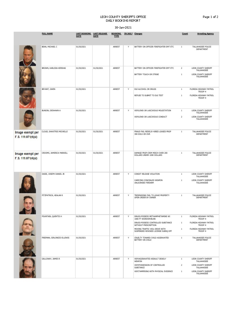Leon County Booking Report Jan 31 2021 Pdf Criminal Justice Crime Violence